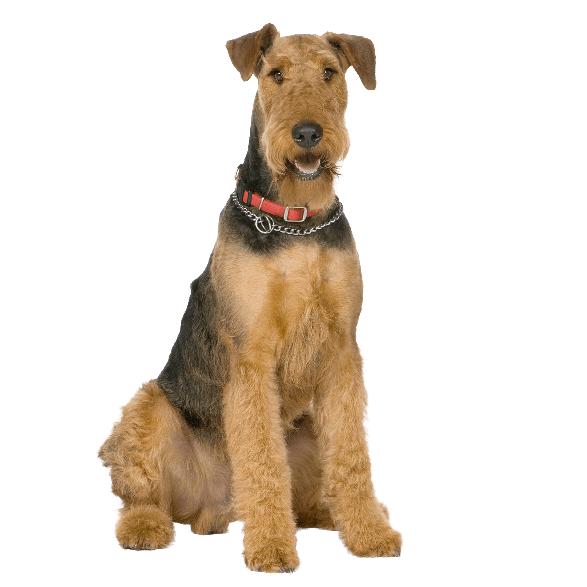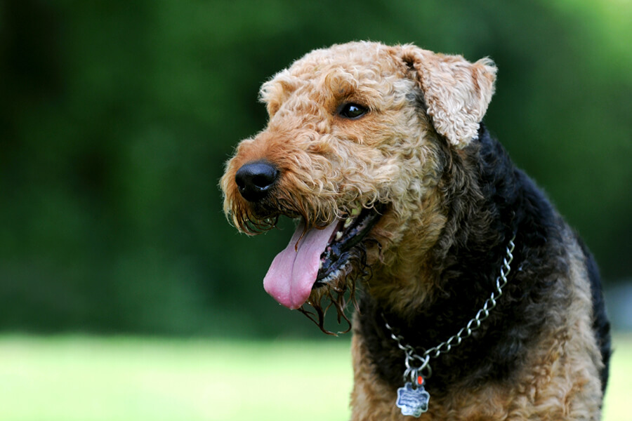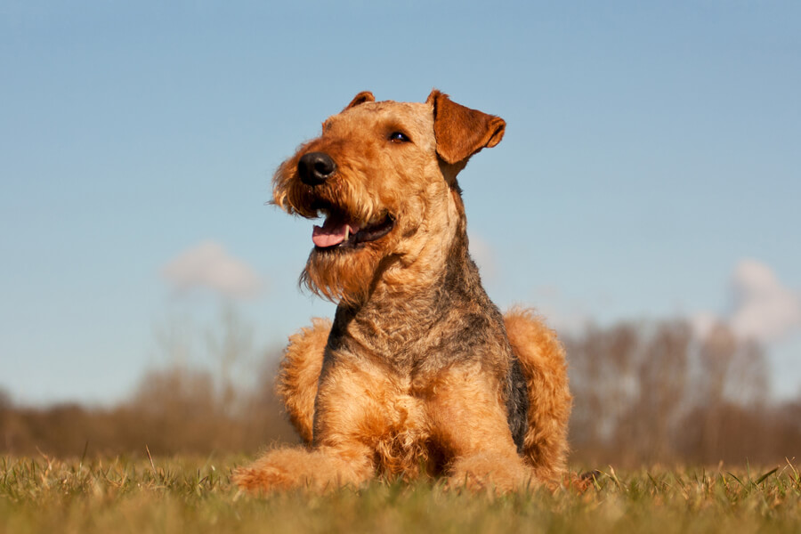 「テリアの王様」とも呼ばれ、テリア種の中では最大の体高を持つエアデール・テリア。