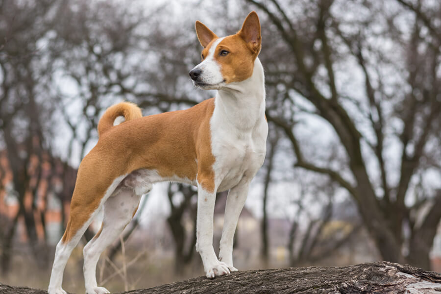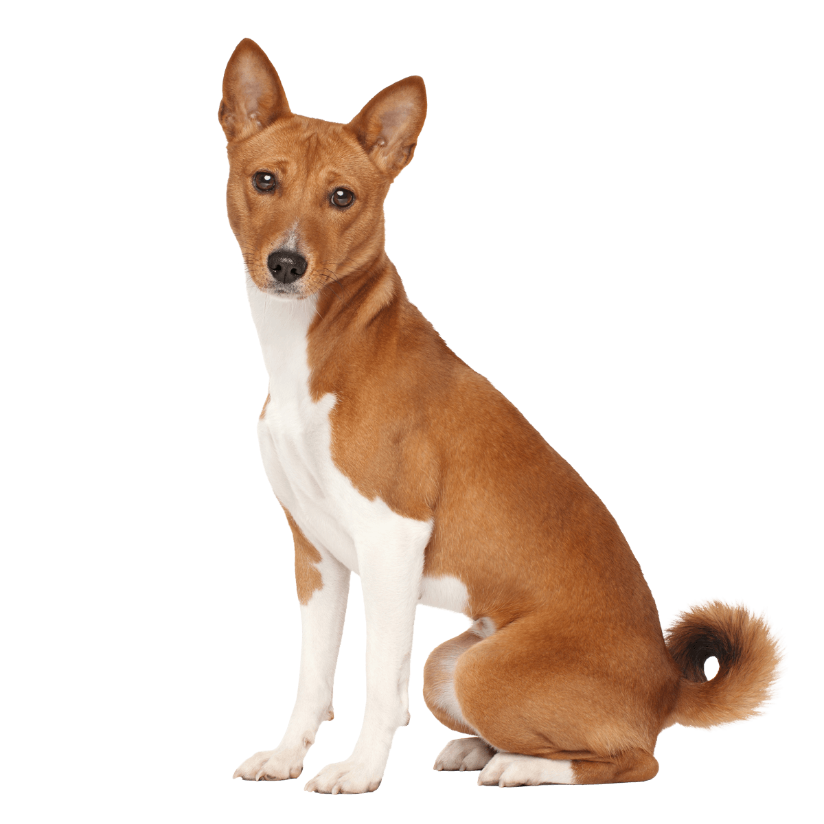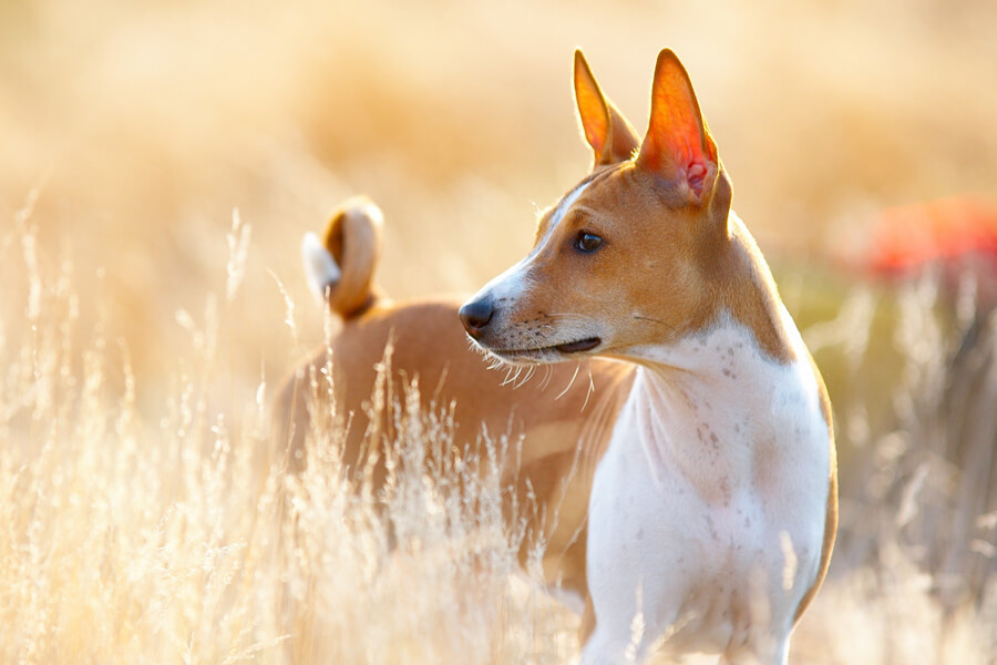 また、ピンと空に向いた耳や、クルッと巻かれた尻尾もバセンジーを表す特徴のひとつです。