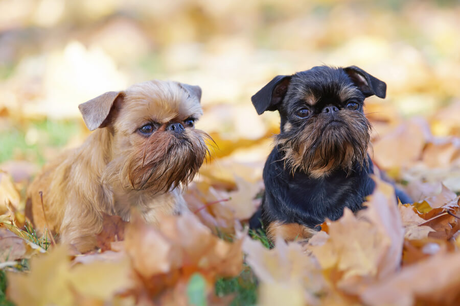 ブリュッセル・グリフォンは被毛の長さ・毛色でその種が分かれるという大変珍しいタイプの犬種で、同じ長毛でも黒い被毛を持つ個体は「ベルジアン・グリフォン」、短毛種であれば「プチ・ブラバンソン」という名称に変わります。