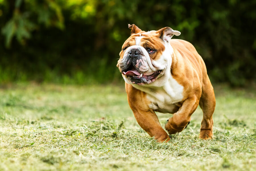 ブルドッグの特徴的な体型は健康管理にも様々な課題があり、細い足で重量感のある胴体を支えているため関節を痛めてしまうケースが多々あります。
