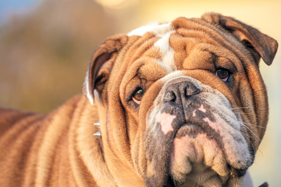 ブルドッグのたるんだ皮膚は、皮膚の重なり合った部分が湿気を帯び、雑菌が繁殖しやすくなっています。