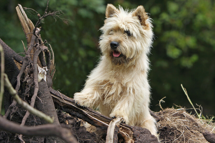 スコットランドでは、ケアーン=石積みという意味があり、石の隙間に潜むネズミを狩る犬として名付けられたのだとか。