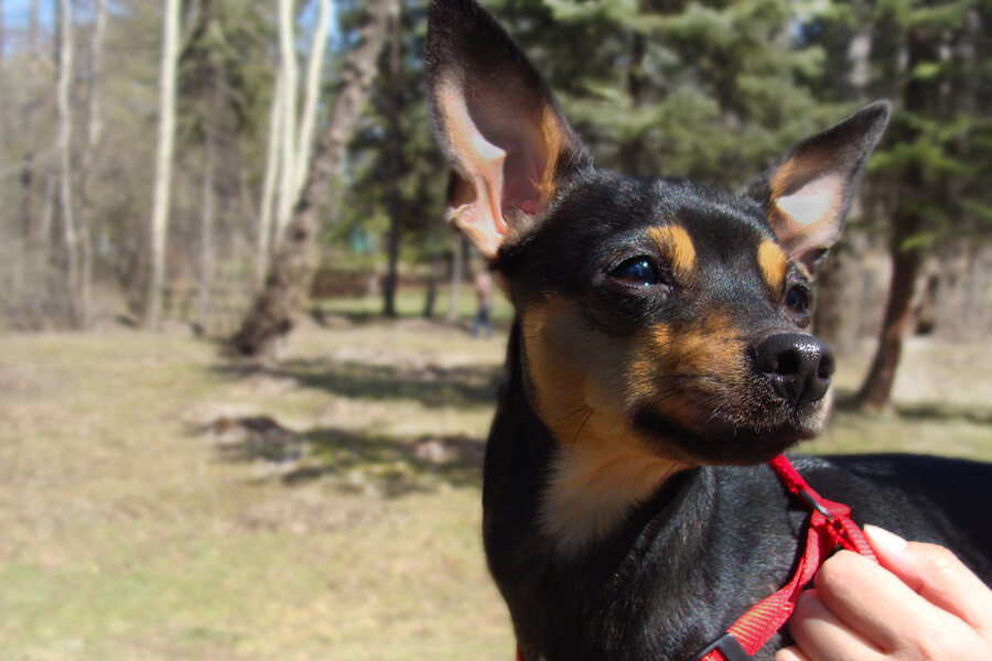 ミニチュアピンシャーは、寒さや加齢など原因は様々ですが、耳のフチ部分の血行が悪くなり、一部が壊死し、脱落してしまう「耳介辺縁皮膚症」をよく発症します。