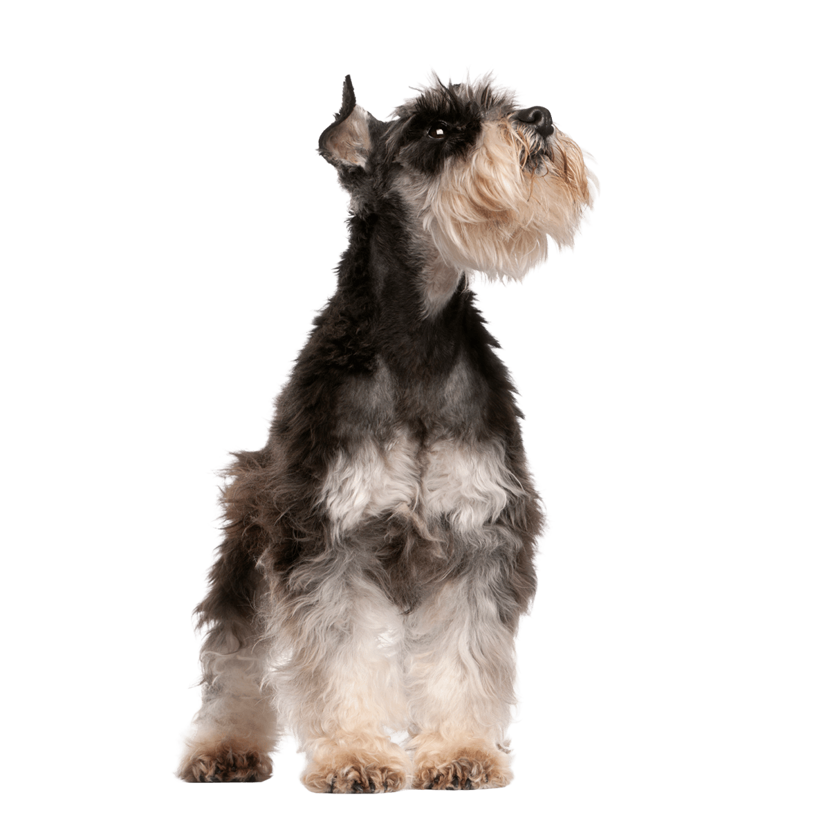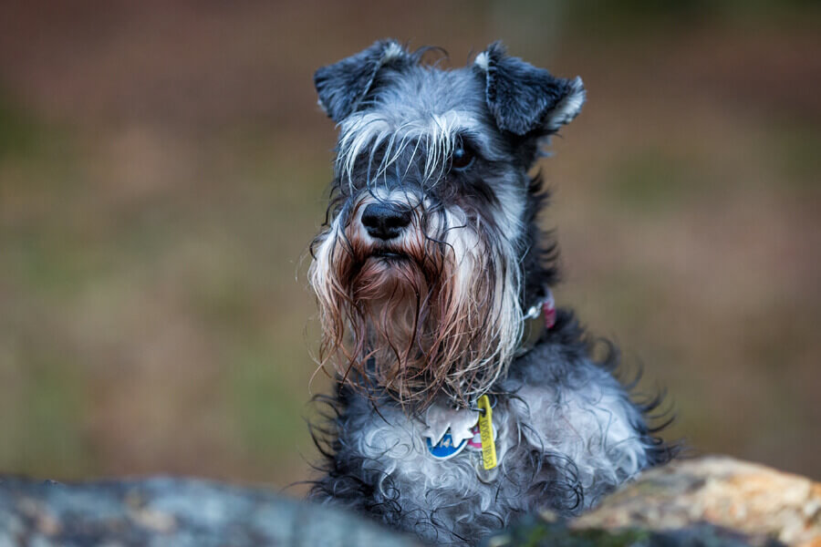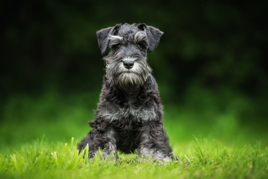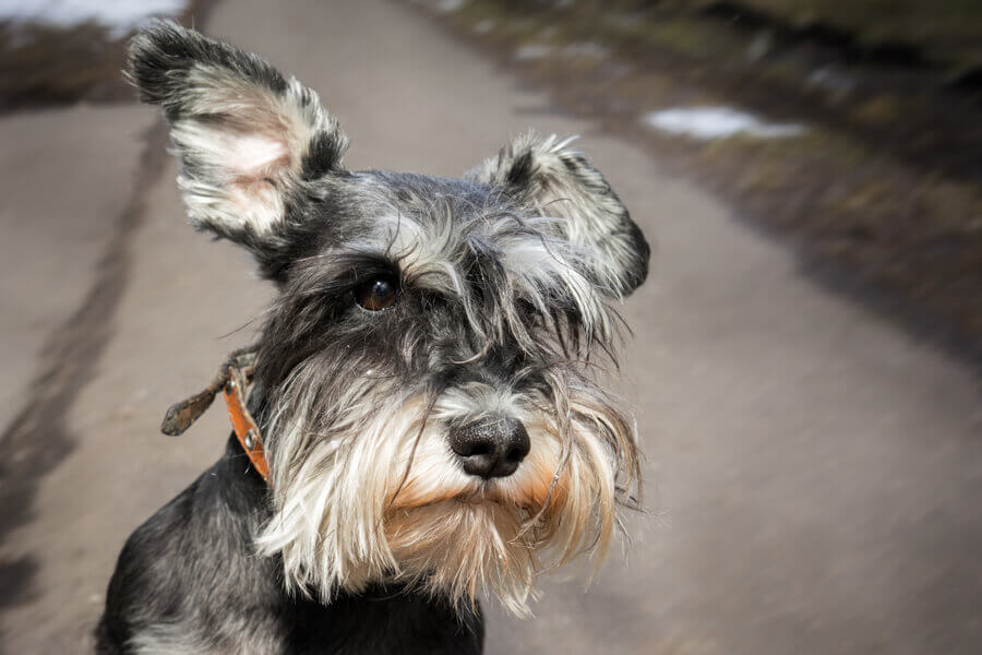 ミニチュア・シュナウザーは、その眉毛やヒゲ部分に長い体毛を生やした非常に特徴的な外見をしています。