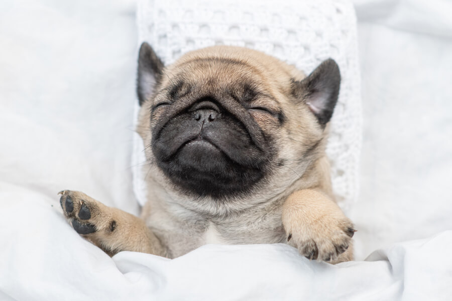 その短い鼻により、犬としては珍しくいびきをかいて眠る子もいます。