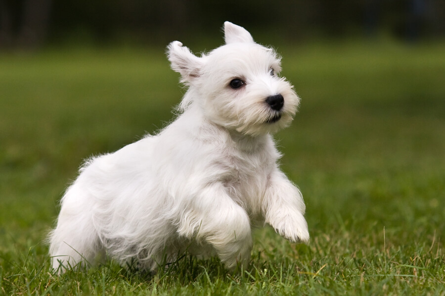 白い被毛はウェストハイランド・ホワイトテリアから受け継いでおり、その高い闘争心はブル・テリアから伝わっているようですね。
