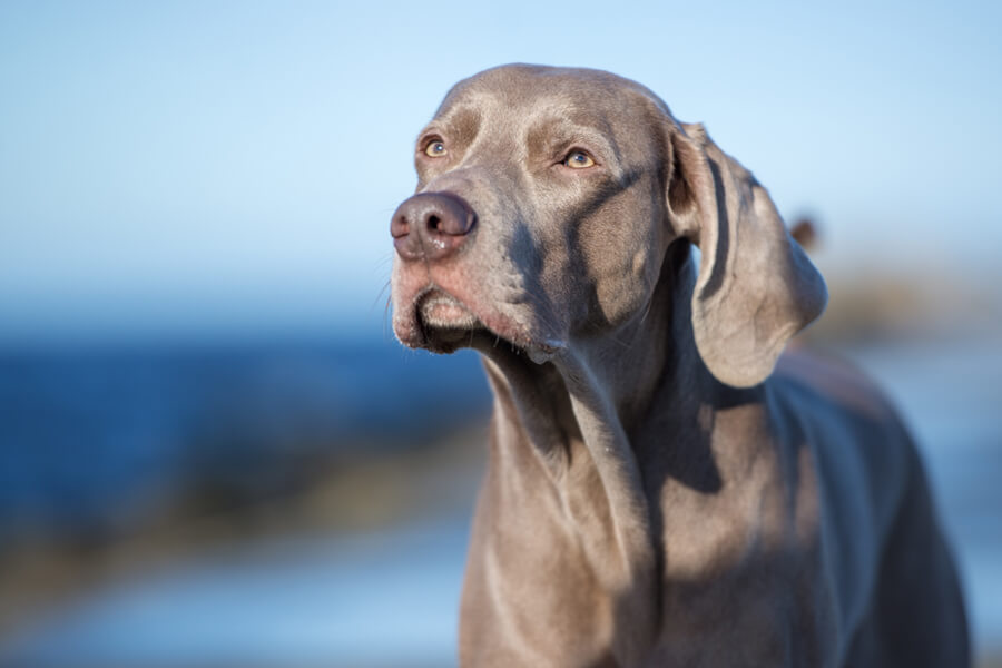 「グレーゴースト(灰色の影)」の異名を持ち、灰色の被毛が特徴的なワイマラナーは、ドイツを原産とする大型狩猟犬の一種です。