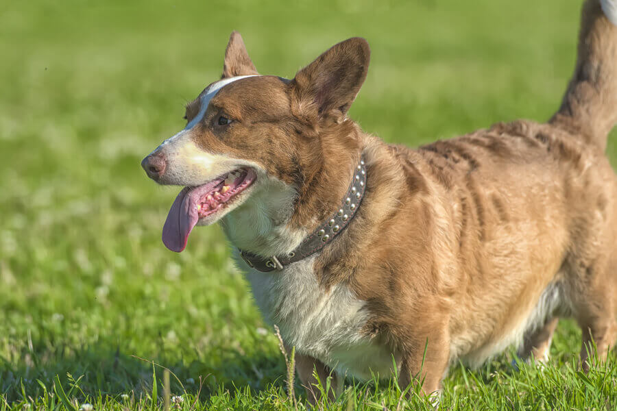 ウェルシュ・コーギー・カーディガンはダックスフンドのように「胴が長く、足が短い」という特徴的な体型をしており、お腹の体毛が地面に付いてしまいそうなくらい体高は低く、丸々としたフォルムがとても印象に残る犬種です。