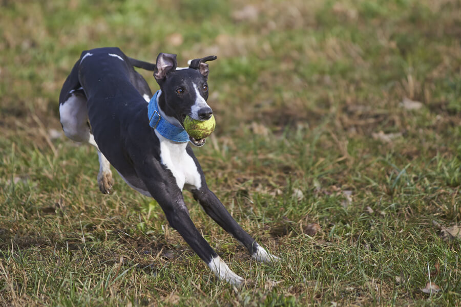 活発で運動が大好きなので、屋外では鞭のようにしなやかな動きで飛ぶように動き回ります。