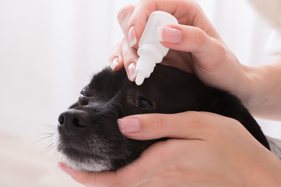 もし愛犬が目を気にしているようなら、動物用の目薬を使ってゴミを洗い流してあげましょう。