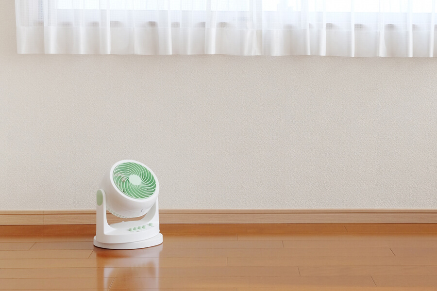 扇風機は壁際で、冷房と同じ向きになるよう設置すると、部屋全体を均等に涼しくできます。