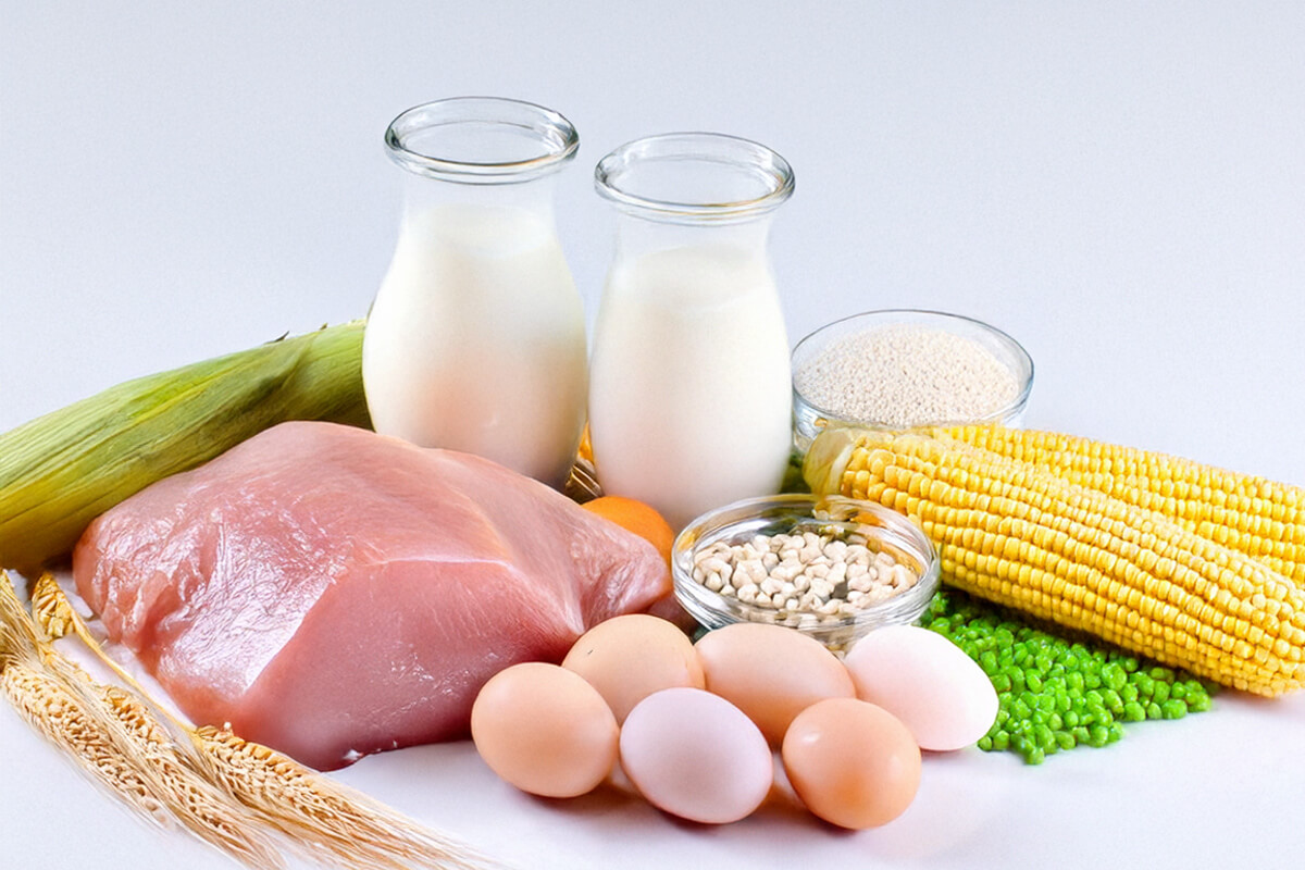| ・牛肉 ・豚肉 ・鶏肉 ・卵白 ・卵黄 ・牛乳 ・小麦 ・大豆 ・トウモロコシ |