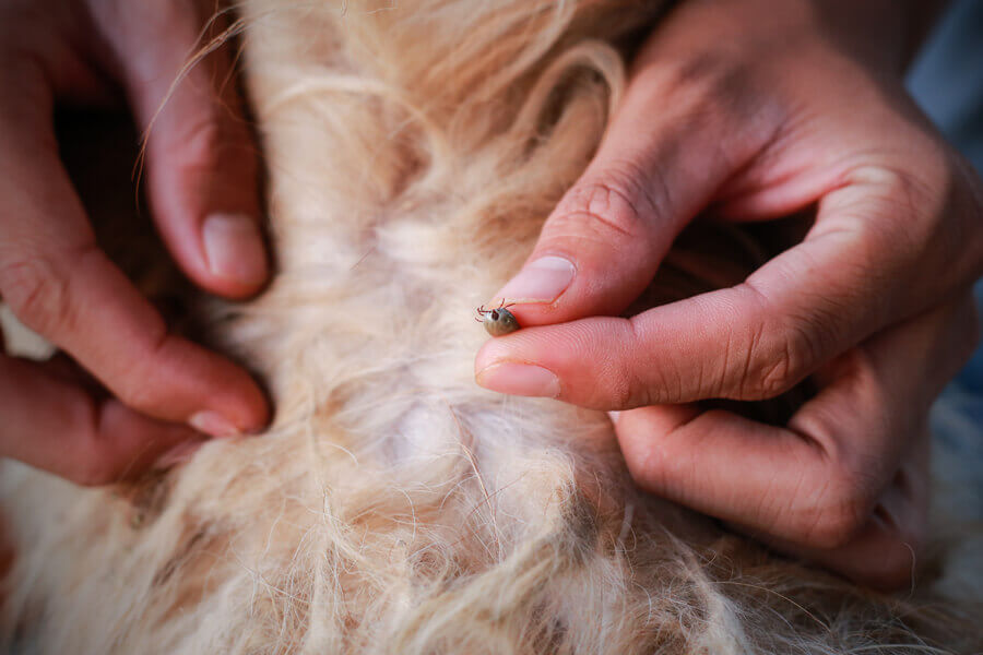 ツメダニは草むらやほこりの多い場所に潜んでおり、散歩や他犬との接触によって感染します。