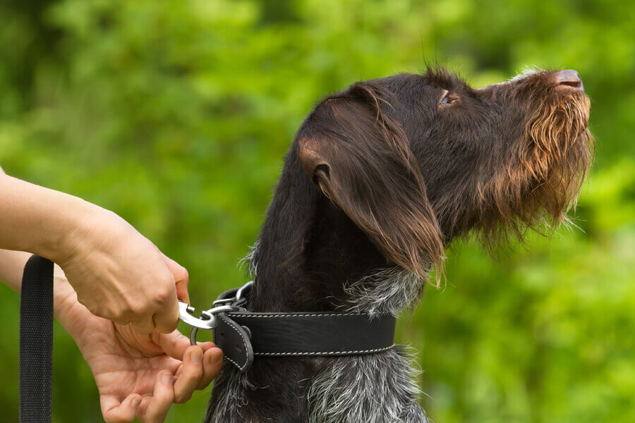 犬に首輪をつける時は、飼い主さんの指が2本入るくらい余裕を持って調整しましょう。
