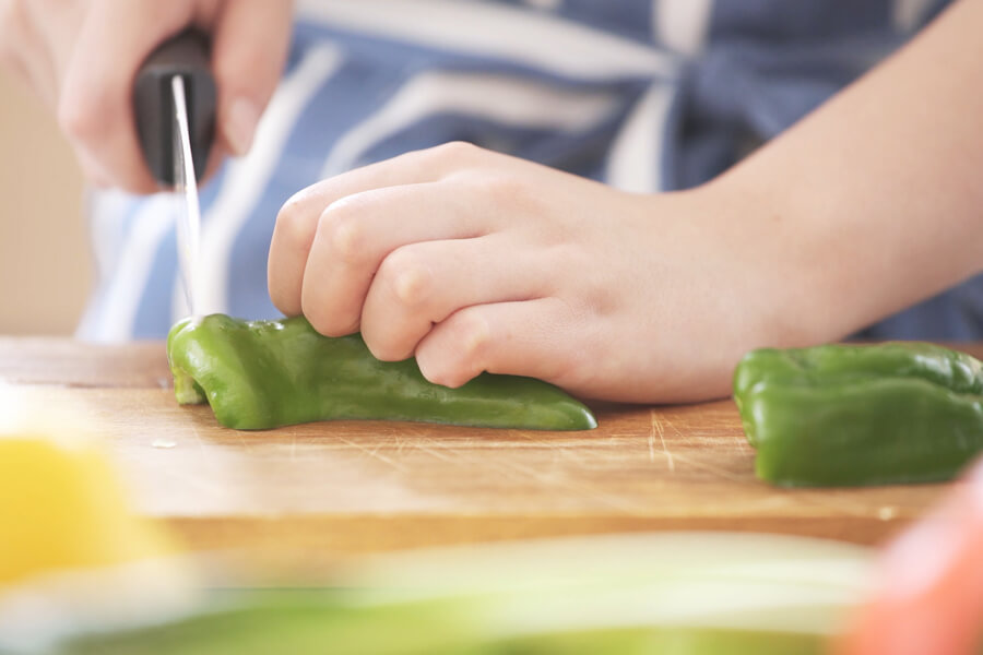 なお、ピーマンは、繊維に沿って切るかどうかで食感が変わります。