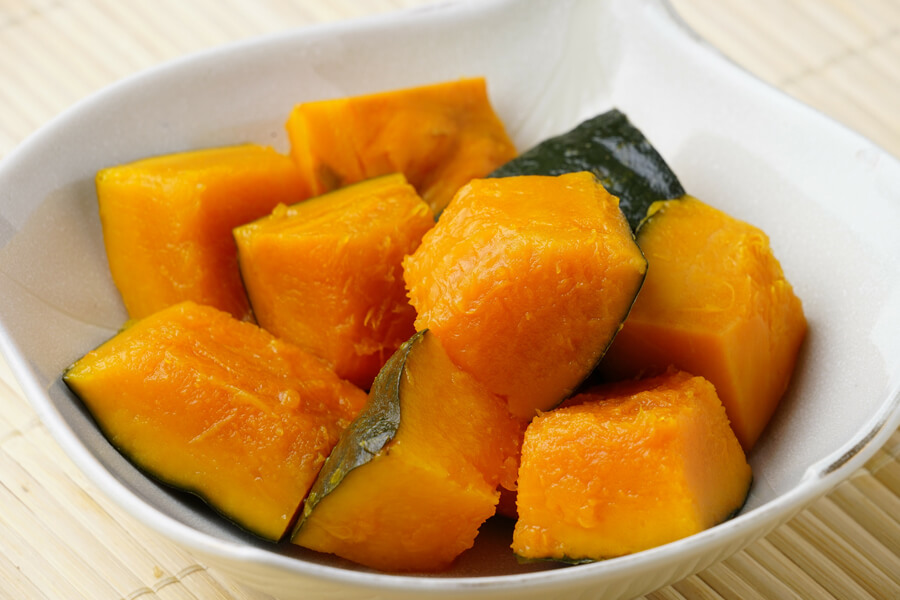 かぼちゃの皮は食べても問題ありませんが、犬が消化しやすいように柔らかく煮てあげるのがおすすめ。