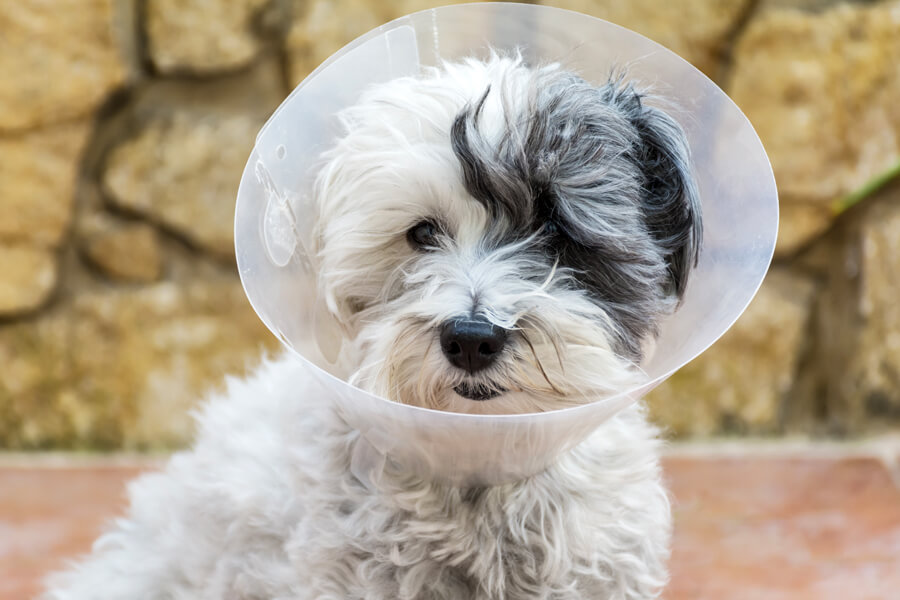 また、犬が患部を舐めないようにエリザベスカラーを付けたり、術後服などを着せ、約2週間後の抜糸までは激しい運動をしてはいけません。