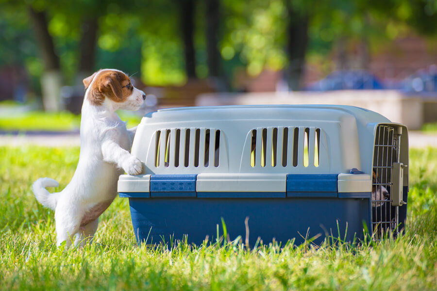 いつもと違った環境でも落ち着いて過ごせるように、クレートトレーニングは日頃から徹底しておくこと。