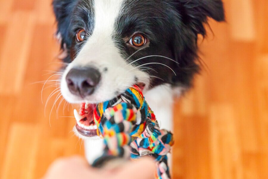 引っ張りっこ遊びは、犬の狩猟欲を満します。
