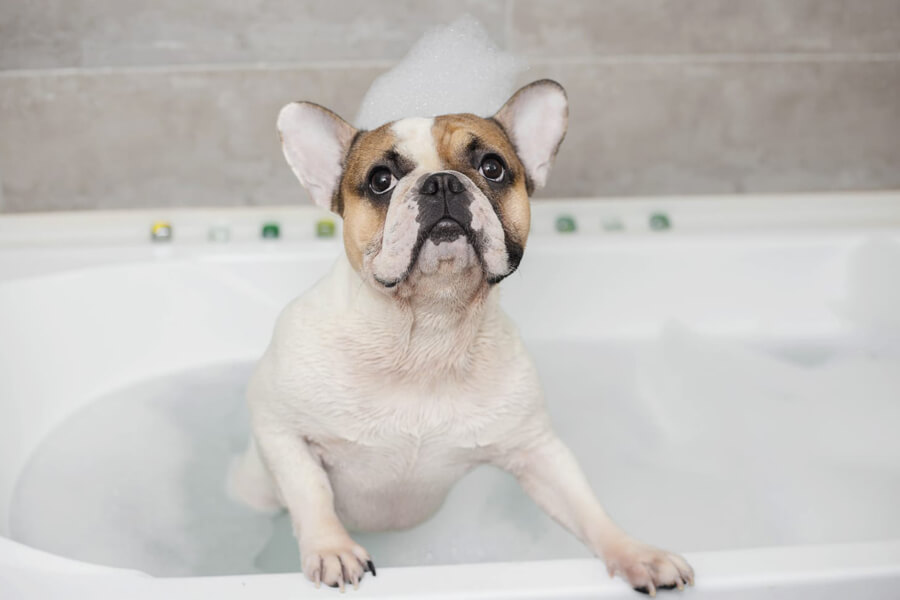 しかし、フレンチブルドッグはアトピーなどの皮膚疾患が比較的多い犬種のため、月に一回程度の定期的なシャンプーを行い、皮膚の状態を把握しておくことが非常に大切です。