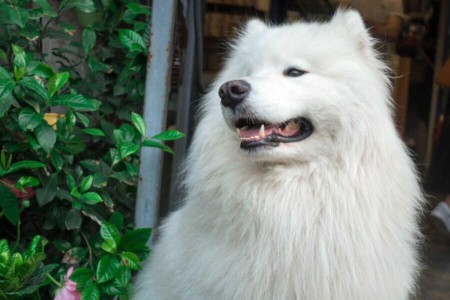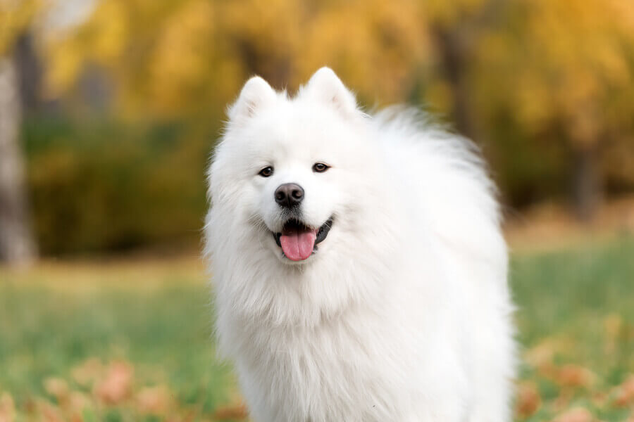 サモエドは、真っ白な被毛が魅力的な大型犬です。