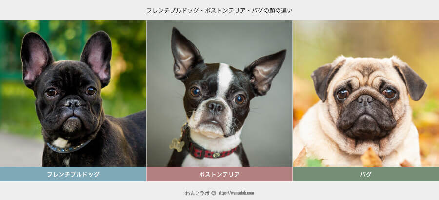 フレンチブルドッグ・ボストンテリア・パグの違いって?鼻ぺちゃ犬の特徴とケア方法