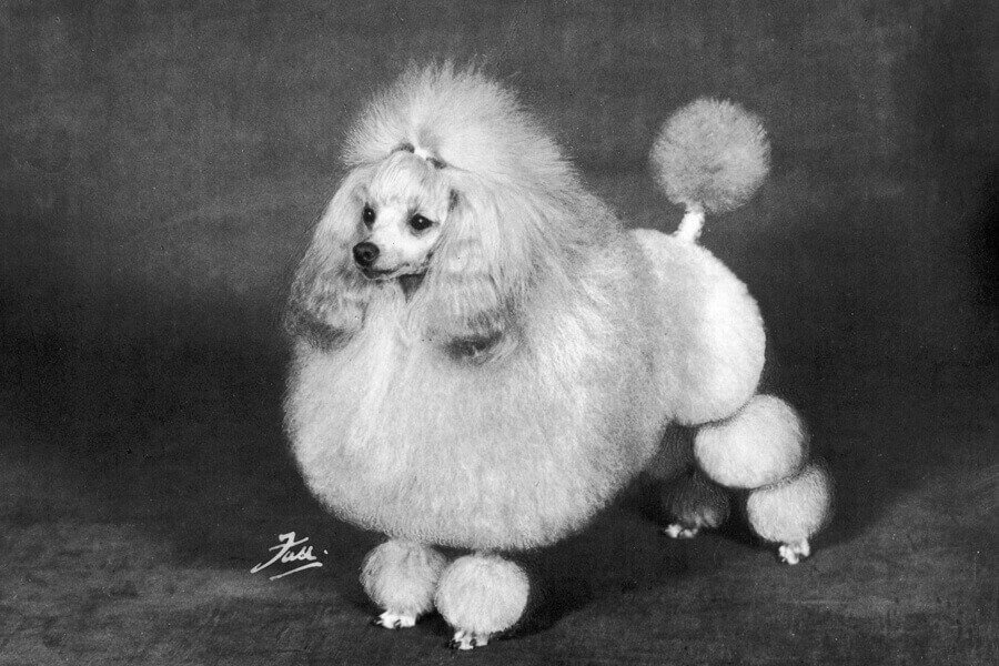 水の抵抗が少ないプードルカットは、この時代のプードルにとって欠かすことのできないカットスタイルでした。
