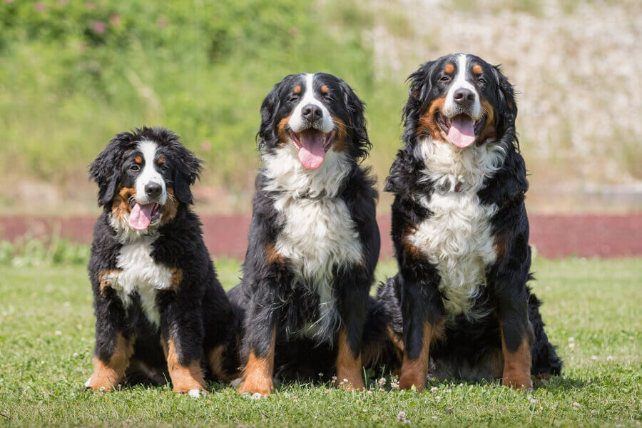 パッと見た写真では、バーニーズマウンテンドッグ以外の3犬種の違いが分かる人は少ないかと思います。