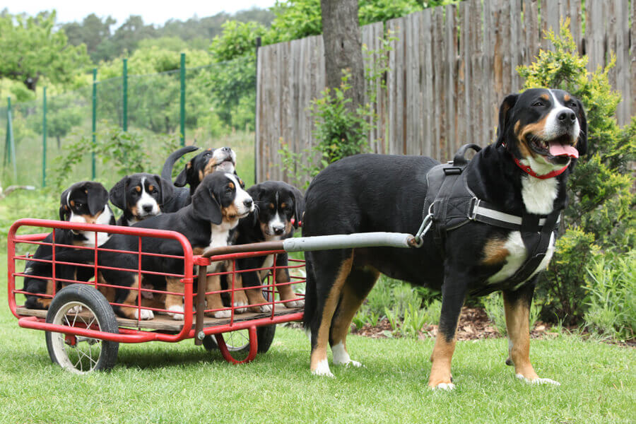スイスマウンテンドッグに属する4犬種は、荷車引きをしたり、牛を誘導するといった作業が得意な犬として、現在でも広く愛されている犬種です。